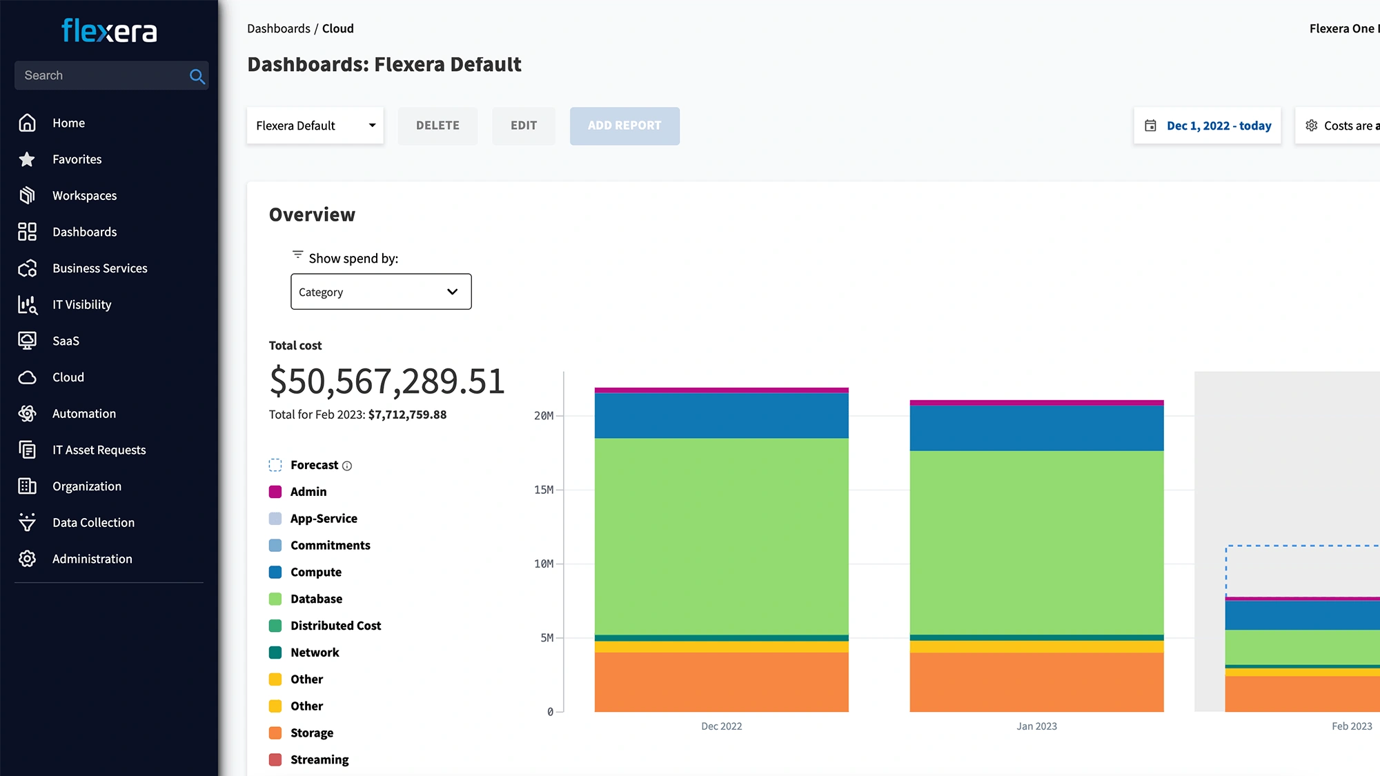 Flexera One is a comprehensive SaaS platform. It provides IT visibility, IT asset management, cloud migration and modernization, and cloud cost optimization capabilities. Flexera One helps organizations manage and optimize their complex hybrid IT environments, from on-premises to SaaS to cloud.